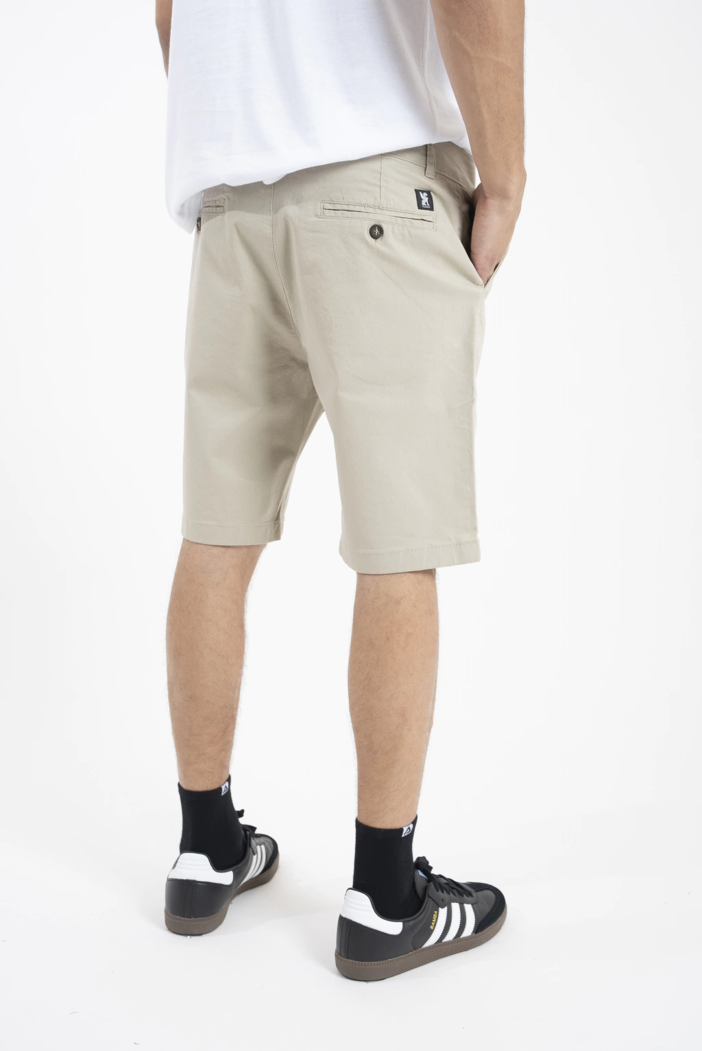 Bermuda de gabardina elastizada corte clasico con bolsillo chino.