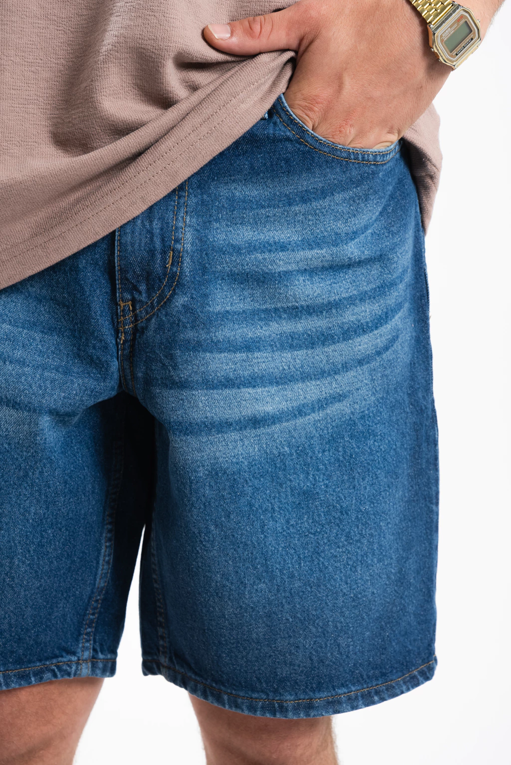 Bermuda Jean Rígida confeccionada en denim 100% algodón, garantizando durabilidad y comodidad. Este diseño presenta un corte clásico con amplios bolsillos, botonadura y remaches metálicos que aportan resistencia y estilo.
